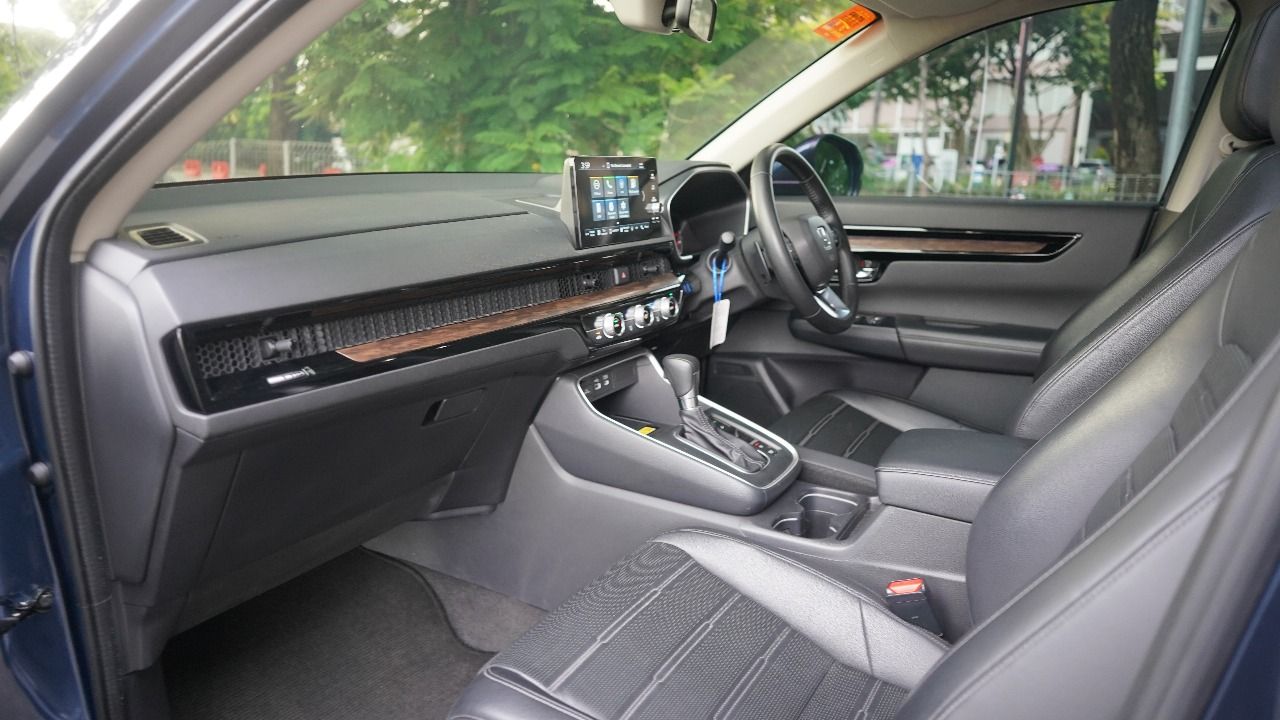 Jok berlapis kulit kombinasi, sunroof+panoramic roof, konsol wireless charging, Honda Lane Watch, hingga power tailgate dengan hands-free yang memudahkan.